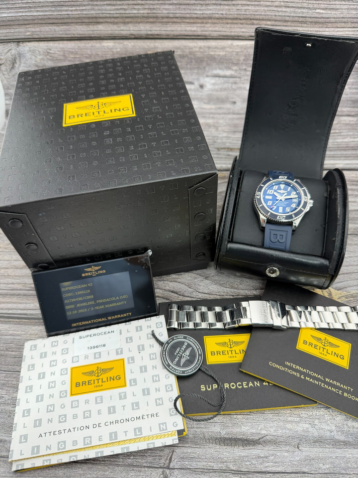 Breitling Superocean, Blue Dial with strap and bracelet, 42mm, A173643B, 2013 Box and Papers