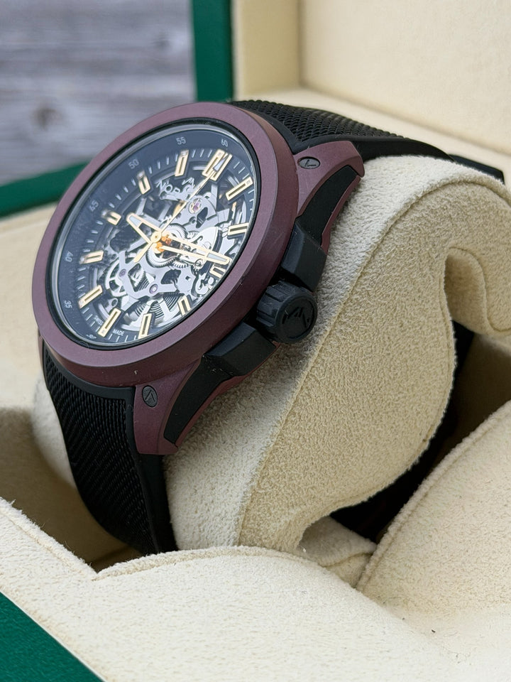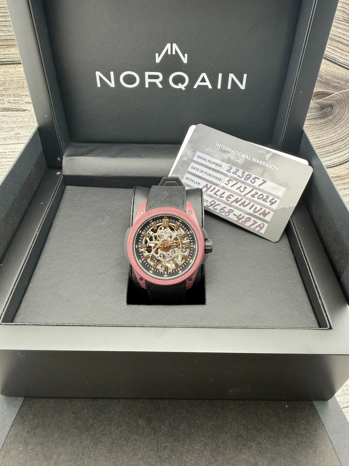 Norqain Independence Wild One, 42mm, Limited Edition, Burgundy Skeleton, 2024 Box and Papers